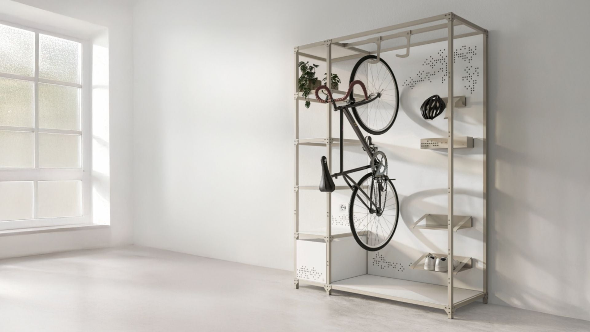 The space-saving modular system to keep your bicycles neatly organized. Made of durable metal, it is compact and versatile, perfect for fitting into any environment.