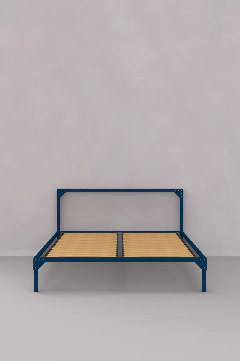 Double bed with minimal aesthetics and attention to detail, consisting of a solid frame made entirely of metal and a beech slatted base that guarantees quality sleep, allows maximum mattress support and even distribution of body weight.