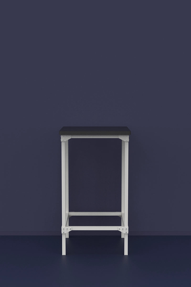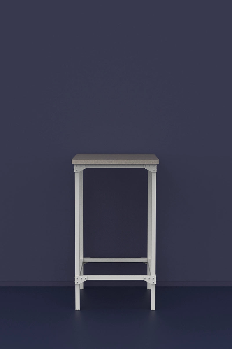 The Scoglio bar table features a comfortable footrest that promotes a relaxed posture and adjustable feet to ensure greater stability.