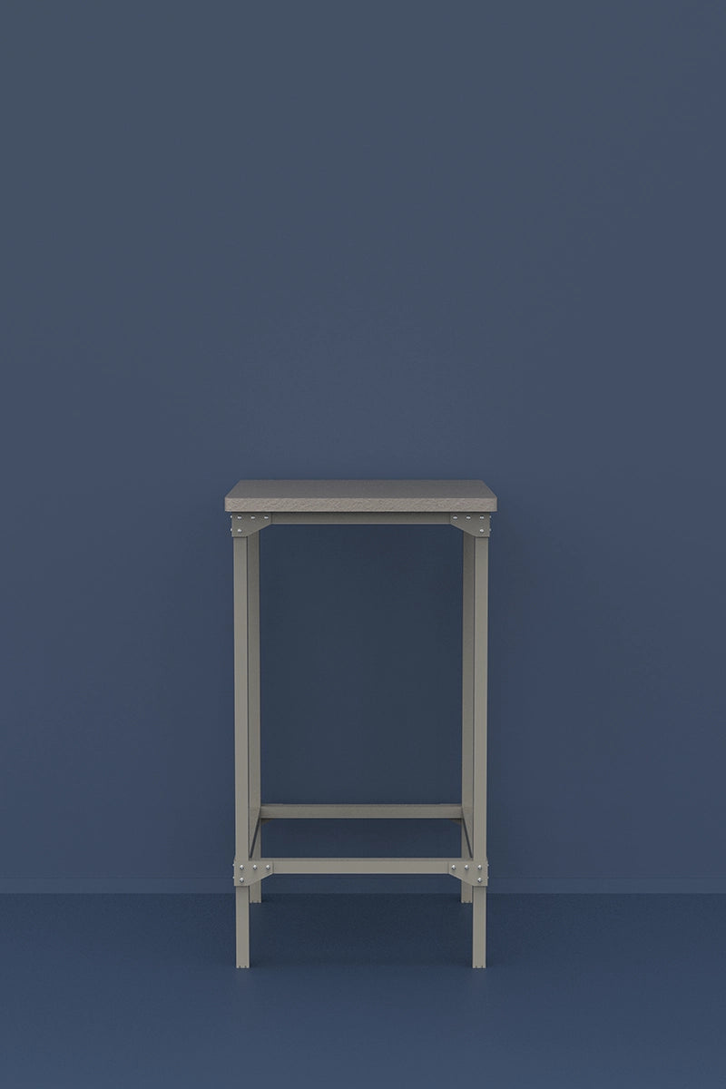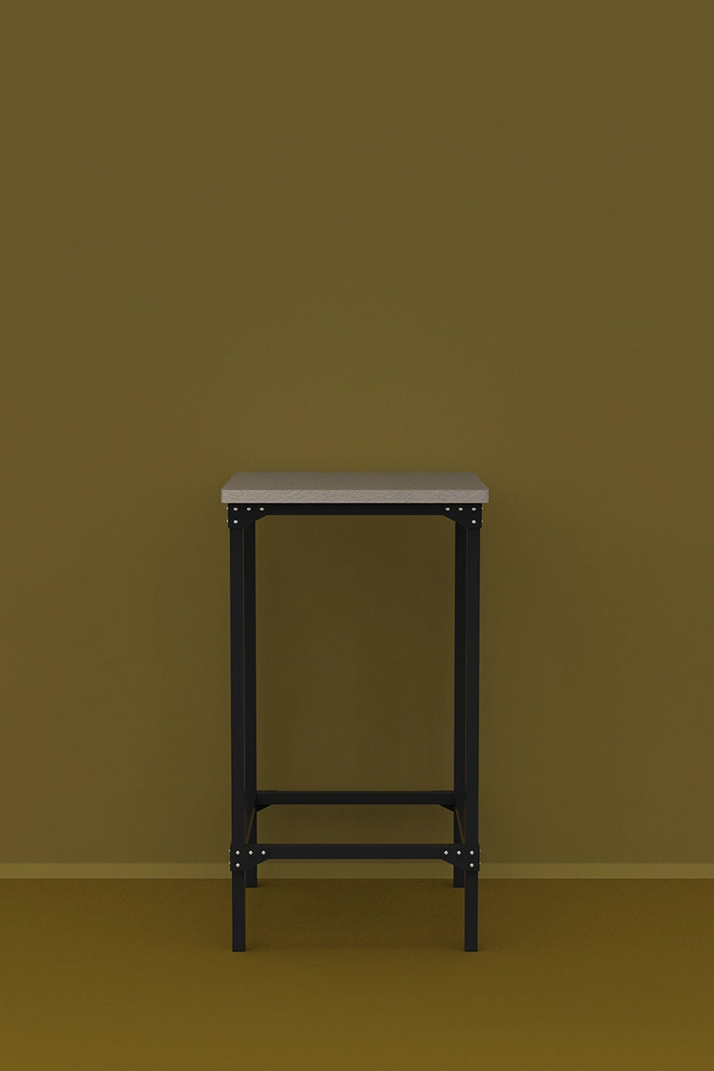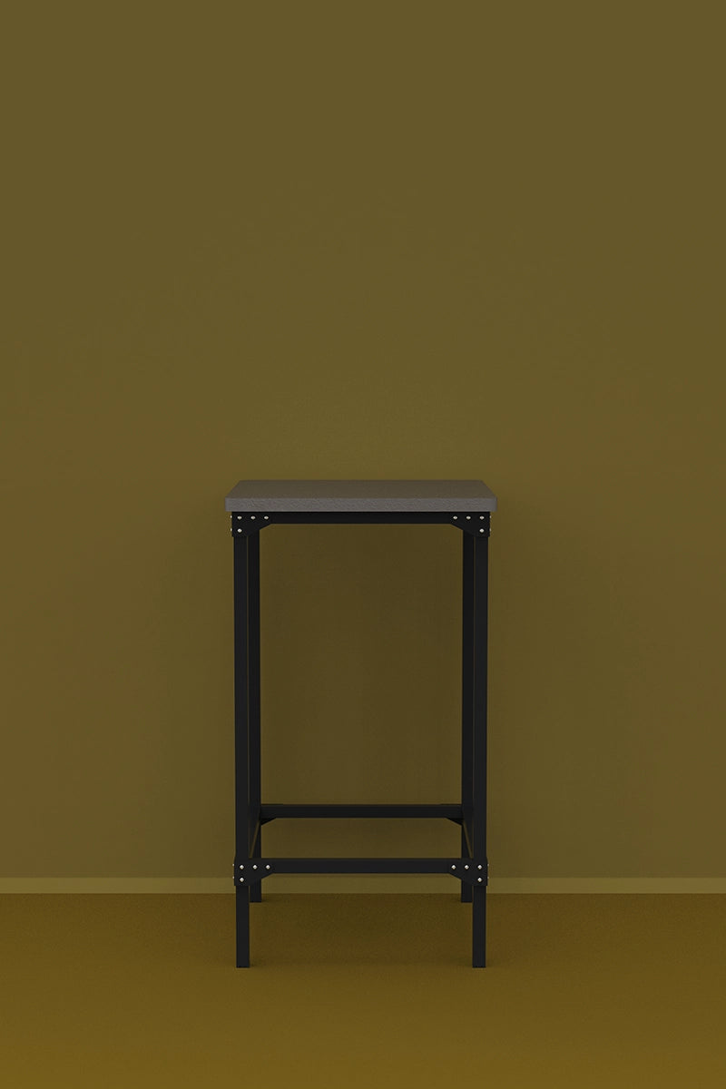 Made for contemporary settings, the Scoglio bar table with clay top offers a texture and natural aesthetic. The clay surface is water resistant, making it perfect for outdoor spaces. The rough effect of the clay top contrasts harmoniously with the metal frame, creating a piece of furniture that enhances minimalist and industrial chic environments.