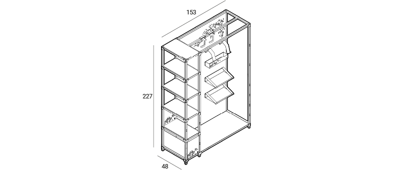 Active Corner è equipaggiato con supporti specifici per organizzare e custodire in modo ottimale le attrezzature sportive.