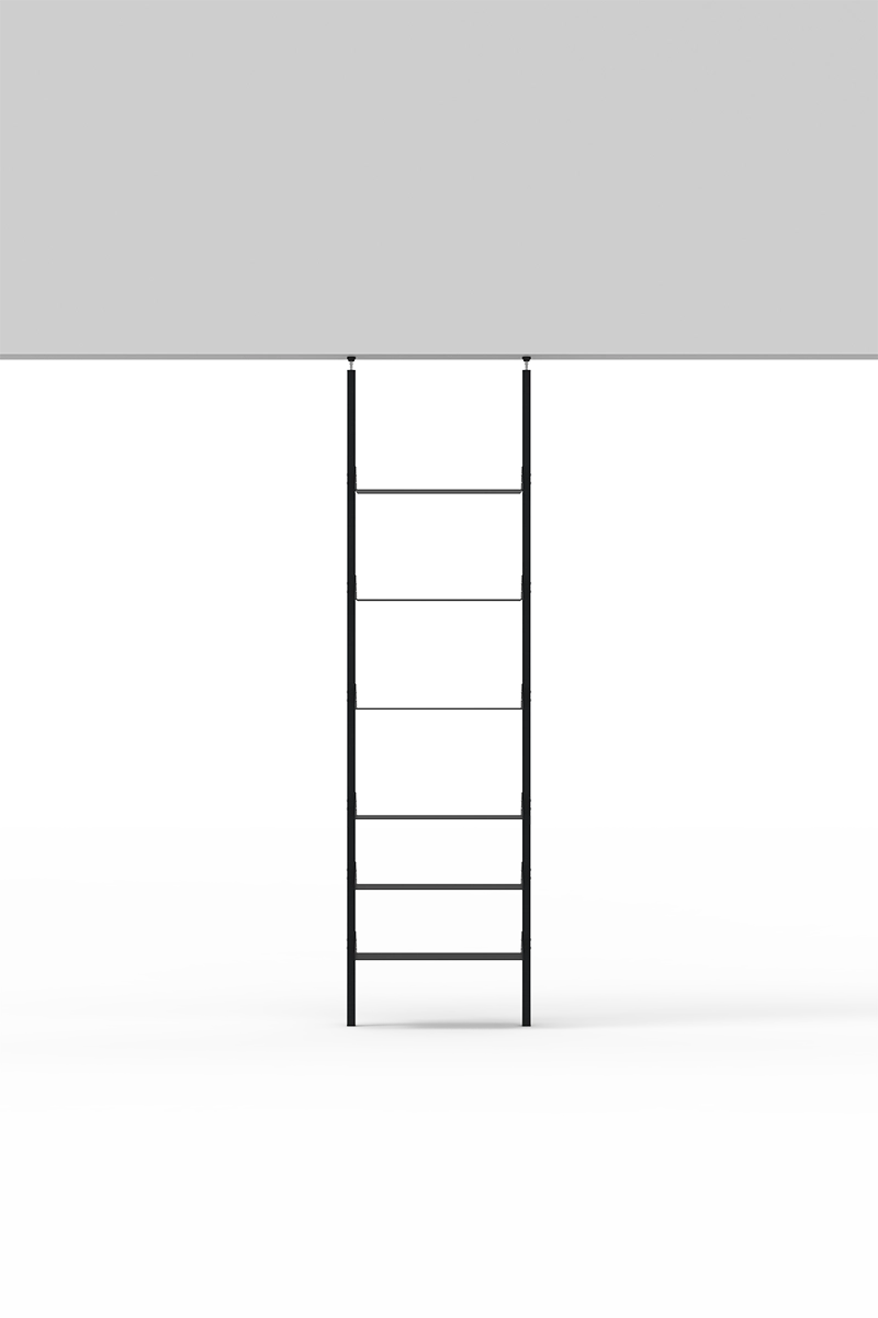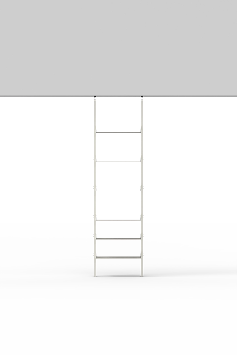 La libreria divisoria Vela si installa tra soffitto e pavimento e include piedini regolabili in plastica per consentire l'adeguamento preciso dell'altezza e garantire la tensione sicura dei montanti.
